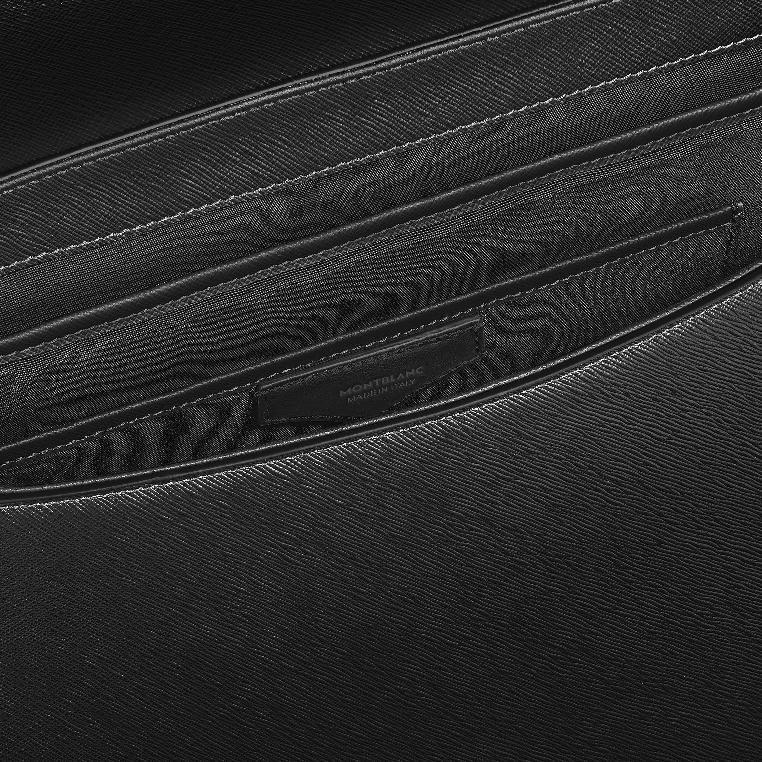 Эта сумка-мессенджер через плечо из черной тисненой кожи, украшенная фирменной пряжкой в виде подковы Montblanc, сочетает в себе структурность и универсальность. Передний клапан открывает доступ к основному отделению с мягким отделением для ноутбука, карманами и петлями для письменных принадлежностей, а регулируемый ремень обеспечивает удобную переноску.