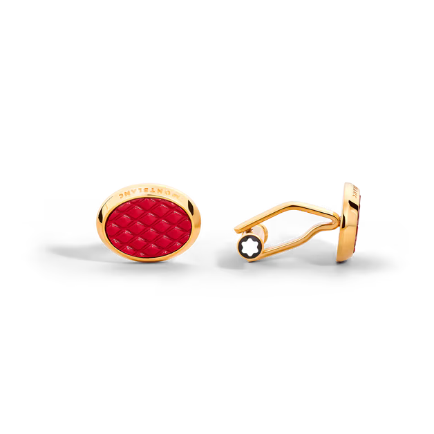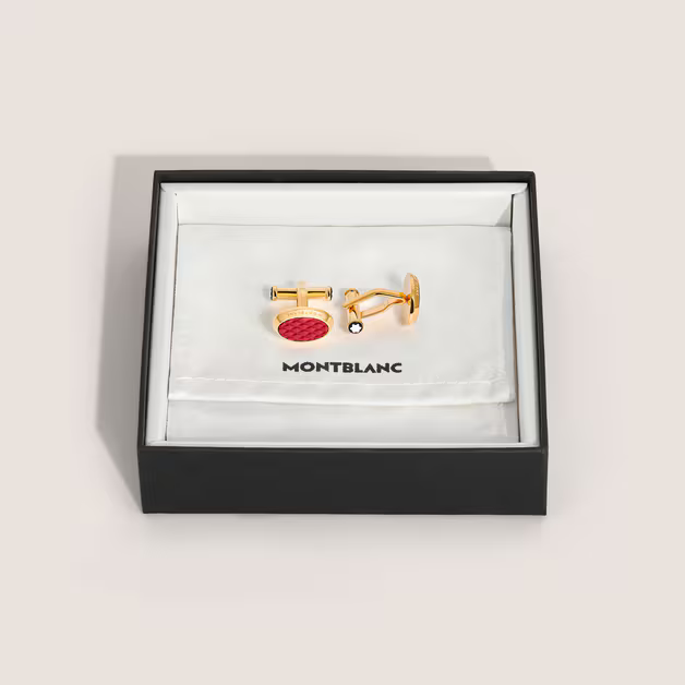 Запонки Meisterstück из стали с красным лаком и PVD-покрытием золотистого цвета.